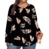 Women's Plus Size Fashion Printed Casual Pleated Round Neck Long Sleeve Top — buy online with free worldwide shipping!
