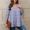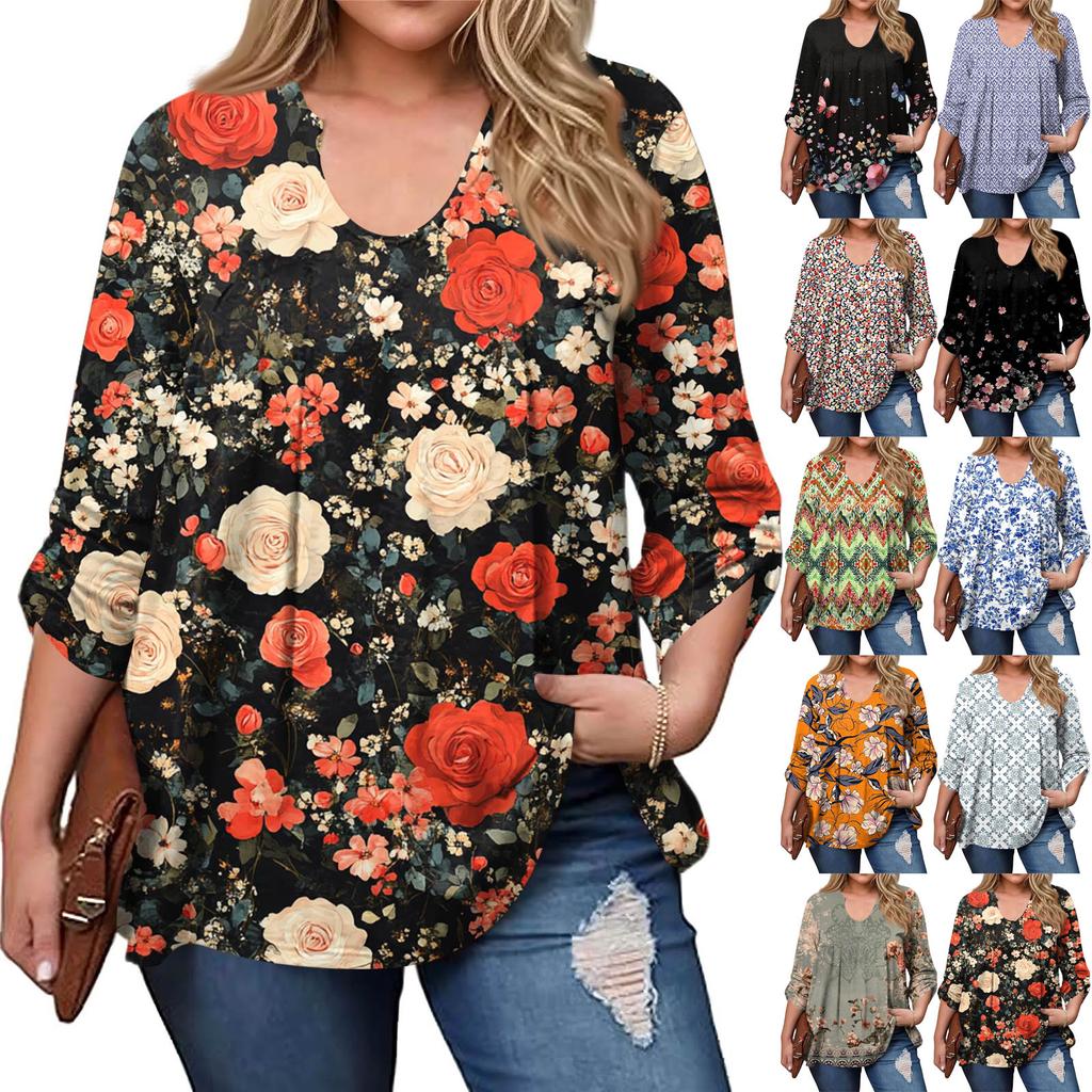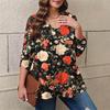 Women's Plus Size Fashion Printed Casual Pleated Round Neck Long Sleeve Top — buy online with free worldwide shipping!