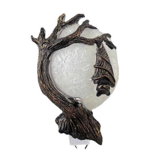 Halloween Inverted Bat Night Light Gothic Moon Tree Hanging Bat Plug-in Light Statue Holiday Party Bedroom Wall Outlet Bat Decorative Lamp — buy online with free worldwide shipping!