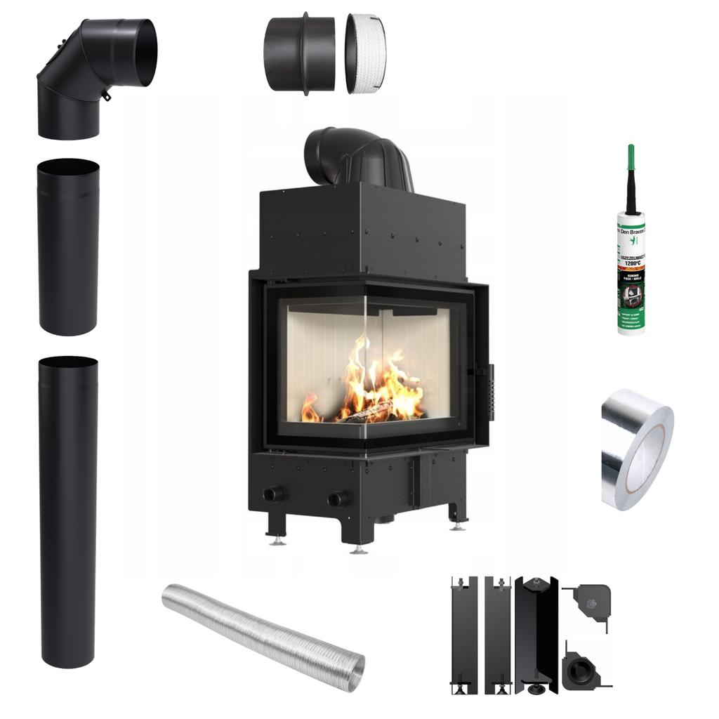 Fireplace Insert KRATKI FLOKI S Left 8 kW Fi 160 Set with Pipes