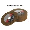 Wide size range: machine Carton, machine Cloth Bag, 25pcs Cutting Disc, 1×Battery Carton, 1×Battery Cloth Bag, 2×Batteries Carton, 2×Battery Cloth Bag
