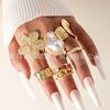 European and American Design Liquid Lava Flower Opening Ring Ins Baroque Imitation Pearl Set Gemstone Ring