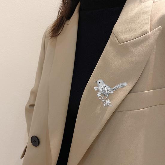 Enhance your style with this exquisite alloy brooch featuring diamond-setting technology. The personalized magpies design adds a touch of charm and elegance to any outfit.