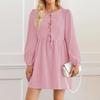 Women's Casual Fashion Lace-up A-line Pleated Long-sleeved Solid Color Short Dress — buy online with free worldwide shipping!