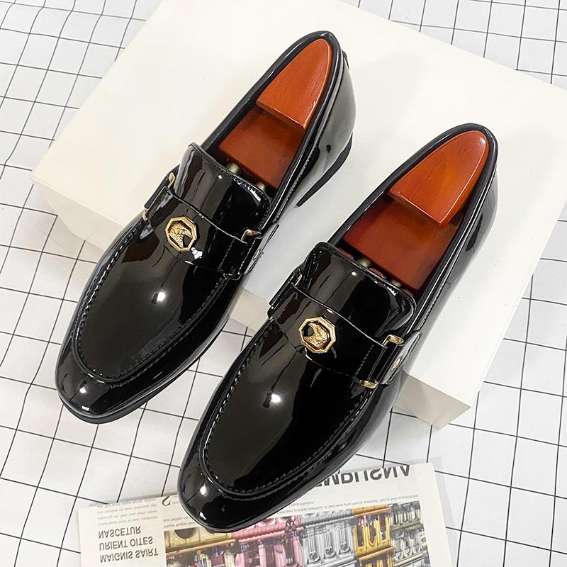 New Designer British Pointed Metal Badge Wedding Dress Leather Shoes Moccasins Prom Homecoming Party Footwear Zapatos Hombre