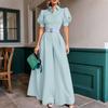 ZANZEA Women Short Sleeve Blouse and Wide Leg Pants Casual Two Piece Suit Sets