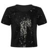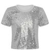 Girls Sparkling Sequin Crop Top Round Neck and Short Sleeves for Hip Hop Dance Costume — buy online with free worldwide shipping!