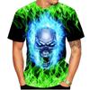 Fire Skull Pattern 3D Printed Men's Casual Hoodie Round Neck Short Sleeve T-shirts