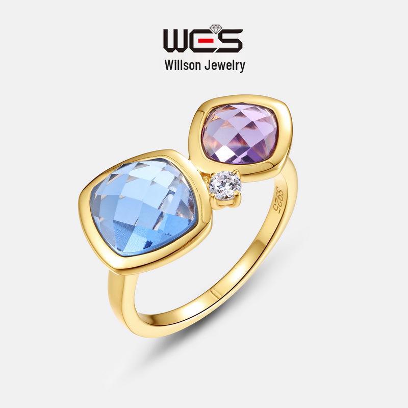 European-American Cross-border Zircon Ring: Women's S925 Sterling Silver, Two-Tone Candy Design, Light Luxury, Colored Zircon, Index Finger Ring — buy online with free worldwide shipping!