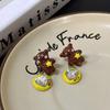 Y2K Yellow Heart Teddy Bear Zircon Stud Earrings - Cute, Cool, Niche Design Trend