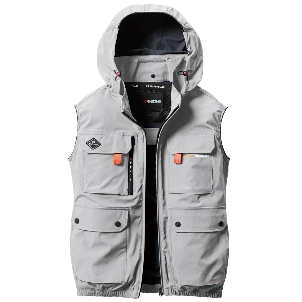 High-back fan-mounted design model that is useful in a variety of work situations. Stress-free 4-way stretch material reduces discomfort caused by fan contact with the body (stretch rate 30%). Dry, cool-touch material with UV protection and coating to prevent air leakage. Ventilated air duct pocket on the back yoke that can store ice packs. Fully compatible with full harnesses with hook hangers and lanyard attachment holes. Large helmet-compatible hood can be attached or detached depending on the purpose. *Unisex wear.