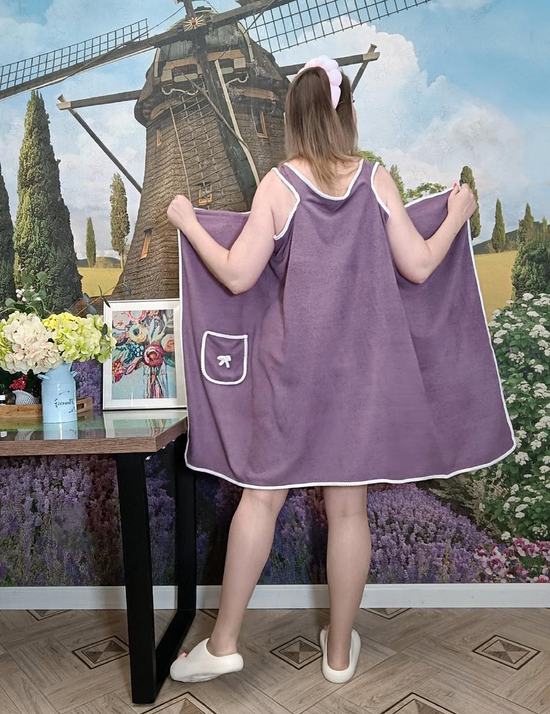 1pc Portable Bath Towel Absorbent Quick Dry Bathrobe with Pockets Bow Decor Bath Towel Bathroom Accessories