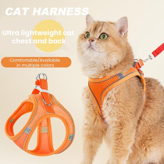 Enhanced Safety: Crafted from soft mesh cloth resembling a lightweight vest, this escape-proof cat harness features reflective strips for improved visibility during nighttime walks, enhancing the safety of your furry companion.