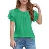 Girls' Ruffled Tee - Solid Color Short Sleeve Casual Top