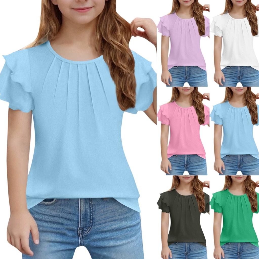 Girls' Ruffled Tee - Solid Color Short Sleeve Casual Top — buy products online with free worldwide shipping!