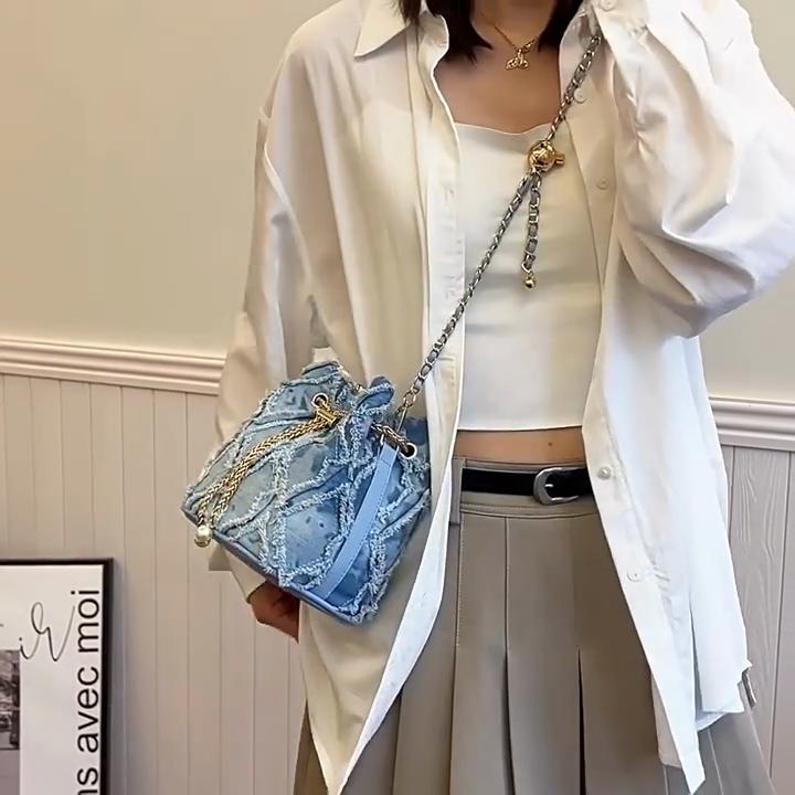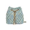 Ling Grid Chain Bucket Bag, Simple Crossbody Bag, Women's Trendy Drawstring Tassel Shoulder Bag — buy online with free worldwide shipping!