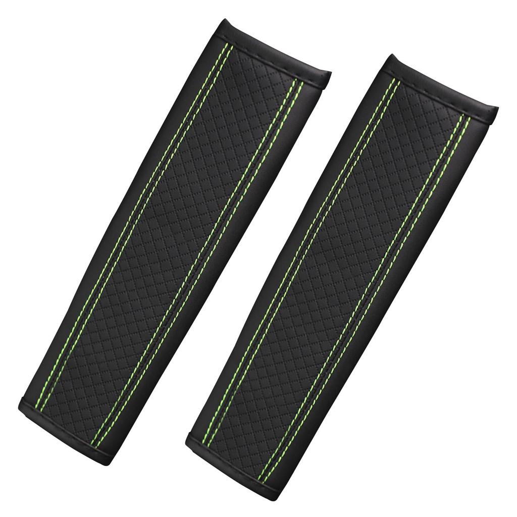 Size: 2.6 x 9.1 inches (6.5 x 23 cm), Set of 2, Black and Green Material Composition: Made of quality leather, moderate cushioning and anti-slip material used for lining. Not only it be used as a seat belt cover, it also be used as a backpack belt