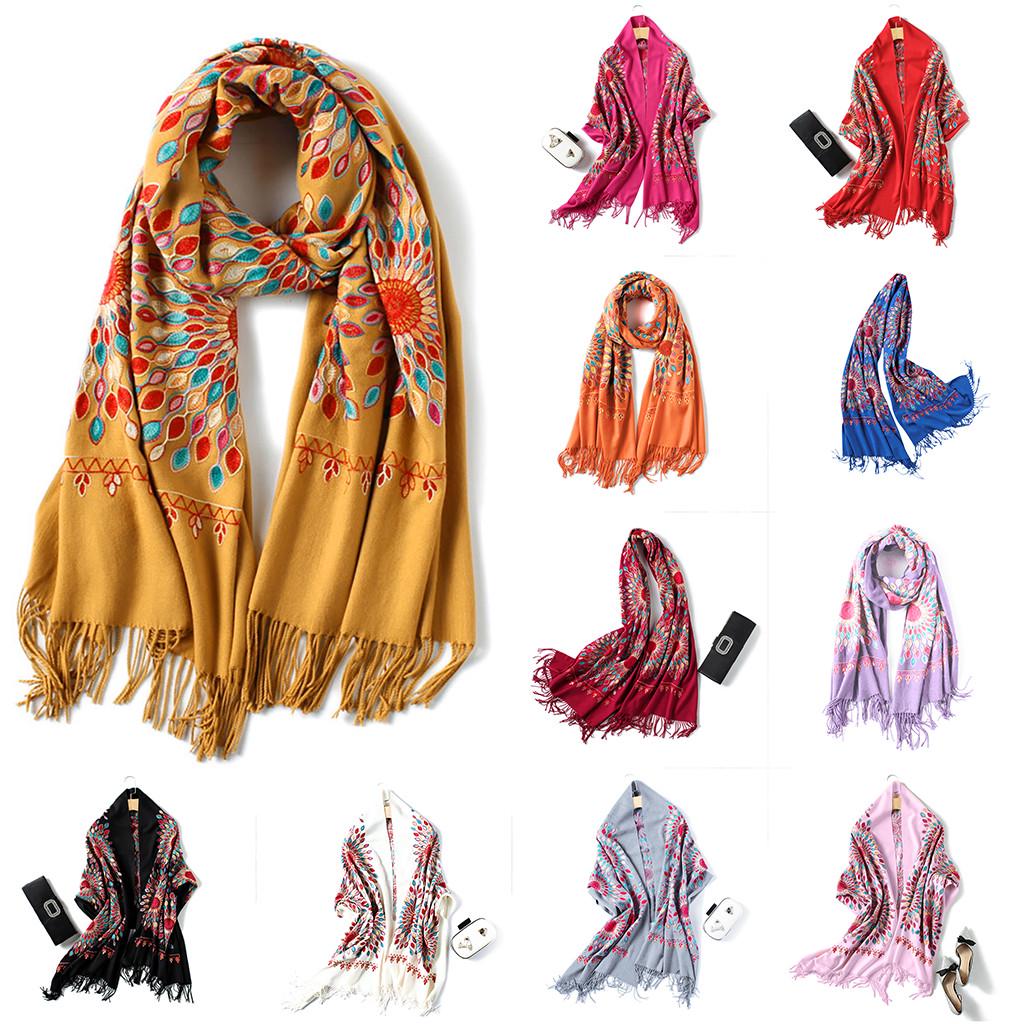 Women Scarf Sun Flower Embroidery Pashmina Cotton Shawls Floral Bandana Scarves — buy online with free worldwide shipping!