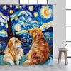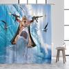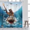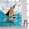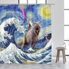 Funny Cat Riding Dinosaur Shower Curtain Cute Animal Surfboard Sea Waves Japanese Landscape Kids Bath Curtains Bathroom Decor