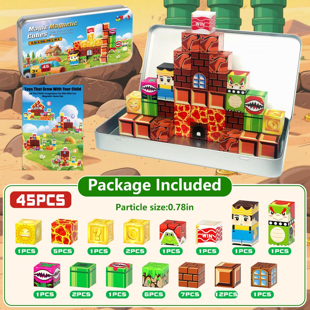 Magnetic Blocks Building Toys Set Toddler Kids Sensory Toys for Boys & Girls Magnetic Cubes Game with Storage Iron Box