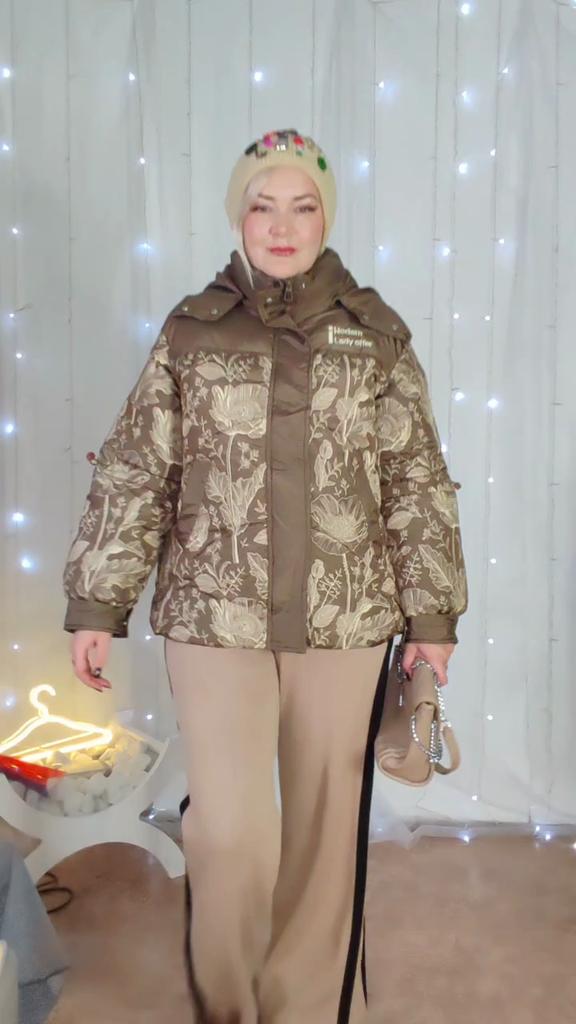 Women Stylish Winter Short Padded Coat Thickened Warm Jacket with Printed Design Petite Size