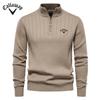 Callaway Embroidered Stand Up Collar Cotton Men's Sweater Casual Half Zipper Solid Color Pullover High-quality Men's Knitted Sweater