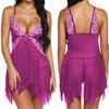 Women V Neck Floral Lace Lingerie Set Open Front Sexy Babydoll Mesh Underwear