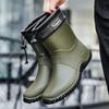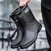 New Men's Mid-Calf Thick Bottom Rain Boots Fashionable Fishing Kitchen Non-Slip Waterproof Car Wash Boots Round Toe PVC Material