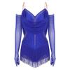Womens Sparkling Tassel Dancewear Mesh Draped Leotard Rhinestone Fringed Bodysuit Adjustable Strap Gymnastics Outfit — buy online with free worldwide shipping!