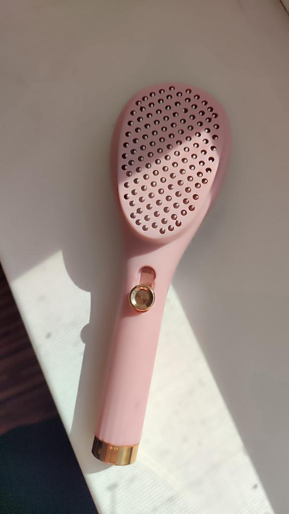 Good afternoon. I bought myself a comb: the color and appearance all match, but where the button is that the teeth extend, it is very stiff (difficult to press). And the product itself is plastic. It will do for the first time, but I'm not very satisfied