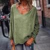 Ladies Spring Autumn Long Sleeves V Collar Loose Solid Color Pullover T Shirt Blouse Top