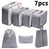 7pcs Solid Color Travel Storage Bag Set Largecapacity Clothes Bags Toiletries