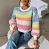 Autumn Winter Rainbow Stripes Knitted Sweaters Lantern Sleeve Loose Jumper Crop Tops Women Sweater Pullover Ladies Casual Shirts
