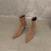 High Heel Pointed Head Temperament Suede Short Boots Women's Shoes Autumn and Winter Velvet Thin Heel Korean
