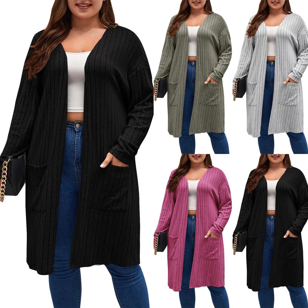 Women's Fashion Casual Long Cardigan Large Size Long Sleeve Knit Jacket
