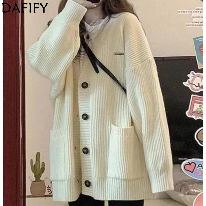 DAFIFY Women's Fashion Casual Fall Winter Solid Color Print Long Sleeve V-Neck Sweaters — buy online with free worldwide shipping!