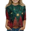 Children's 3/4 Sleeve Tops Casual Christmas Print T Shirt Round Neck Pullover Blouse — buy online with free worldwide shipping!