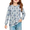 Girls' Long Sleeve Blouse - Round Neck Soft Waist Tunic