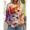 Women's Cute Cat Long Sleeves T-Shirt Round Neck Long Sleeved Autumn Animal Clothing Holiday Gift Clothing Fashion Party T-Shirt — buy online with free worldwide shipping!
