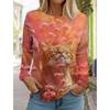 Women's Cute Cat Long Sleeves T-Shirt Round Neck Long Sleeved Autumn Animal Clothing Holiday Gift Clothing Fashion Party T-Shirt
