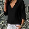 2025 Autumn Winter Women's Deep V-Neck Chiffon Blouse, Plus Size Button-Down Office Shirt With Flowy Sleeves, Elegant Business Casual Top For Workwear — buy online with free worldwide shipping!