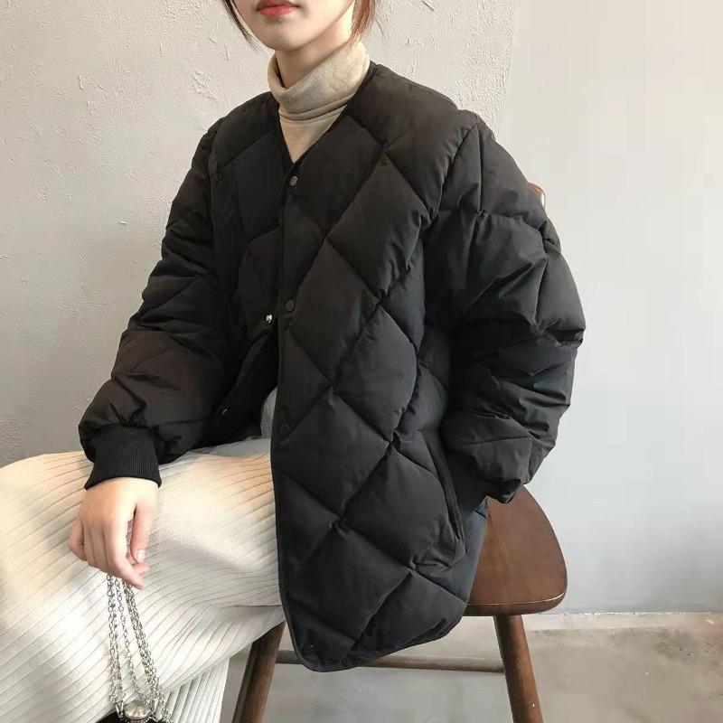 Retro Down Cotton Cotton-padded Clothes Women's Rhombus Grid Simple and Loose Casual Winter New Top Women's Coat