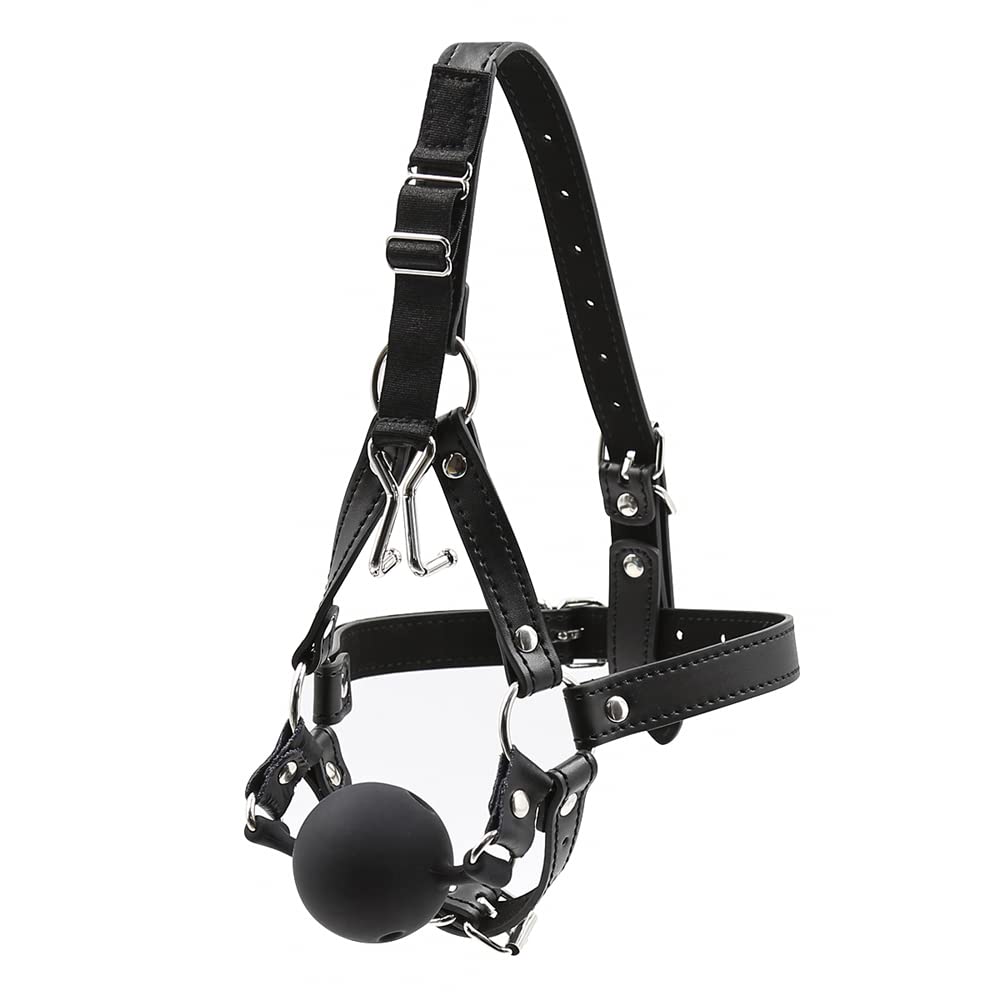 SM VIP Nose Hook Ball Gag Harness Black (043) — buy online with free worldwide shipping!
