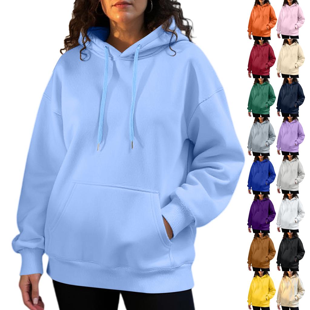 Women's Fashion Solid Color Casual Long Sleeve Hoodie