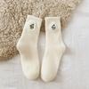 Female Autumn and Winter Thickened Warm Sweet Lovely Embroidered White Medium Long Socks