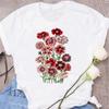 Red Rose Print Women T Shirt Summershort Sleeved Round Neck Harajuku Korean Style Graphic Tops Kawaii Female T-shirt Tops