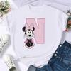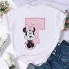 Kawaii Ladies Tees Disney Cartoon Mickey Mouse Letter Minnie T-shirt White Short-sleeved Women 90S Tops Summer Loose Blouse