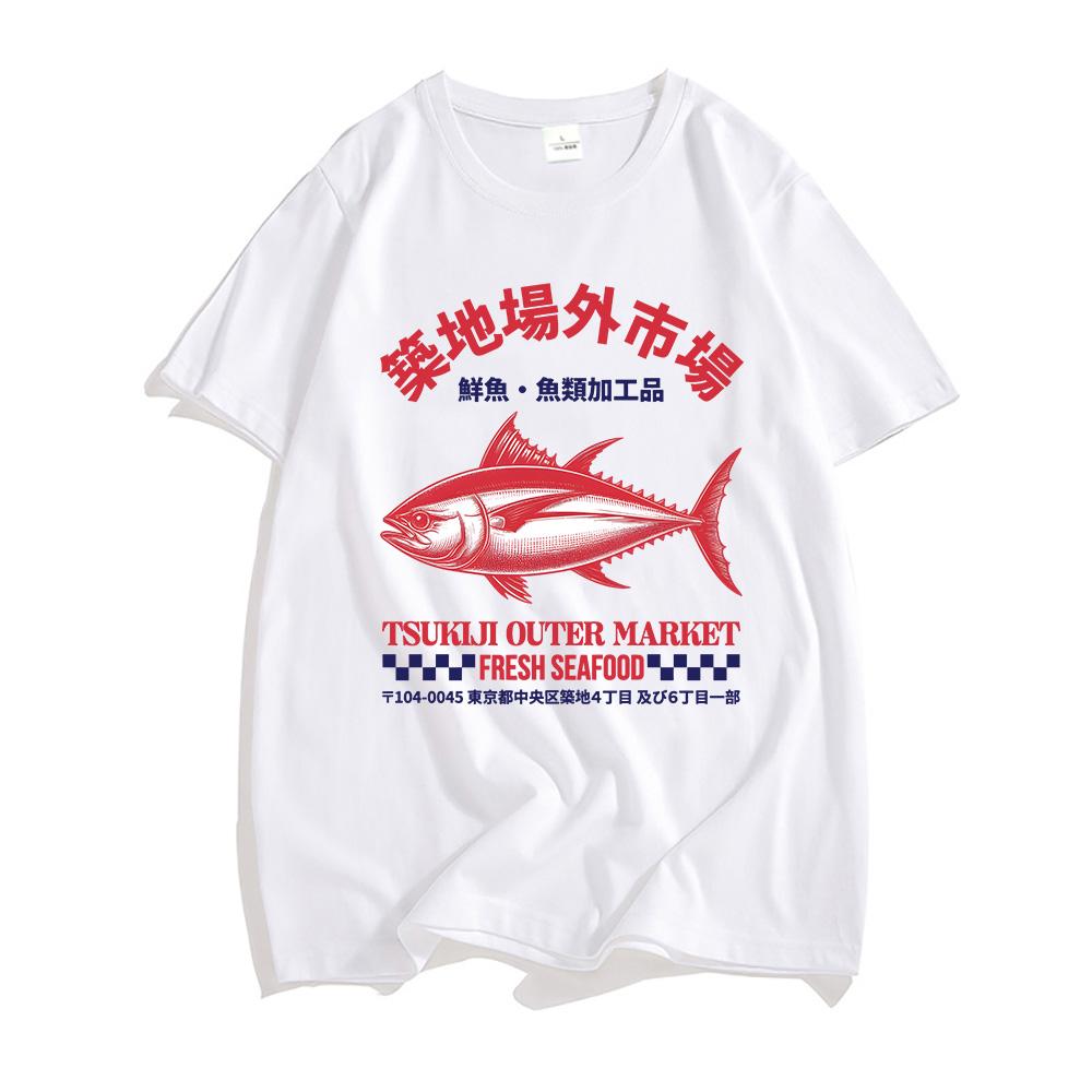 Japanese Fish Tsukiji Market Funny Meme T Shirt Men Women Vintage Harajuku Fashion T-shirts Summer Cotton Loose Tshirt Print Tee