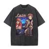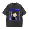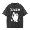 Serial Experiments Lain Anime Vintage Washed T-Shirt Manga Iwakura Girl Sci Fi Short Sleeve T-shirts 100% Cotton Casual T Shirt