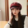 Hat Women's Yinglun Style Retro Plaid Octagonal Hat Autumn and Winter Fashion Versatile Newspaper Bee Hat High Quality Leather Edge Baseball Cap